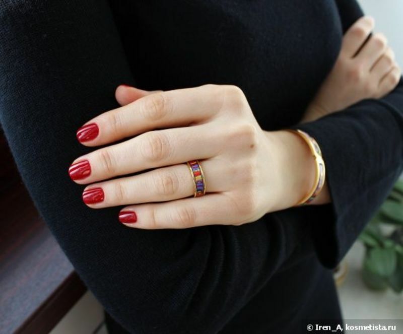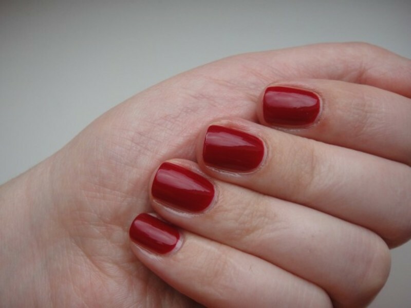 完美純正的紅色,在瓶身上的顏色比指甲上實際的顏色略深,略帶點猩紅色的底色。在人造光下會看起來類似於越橘和石榴漿果。但在陽光底下,會呈現真正的紅色。經典而優雅的紅色調,讓你輕易搭配各種裝扮。