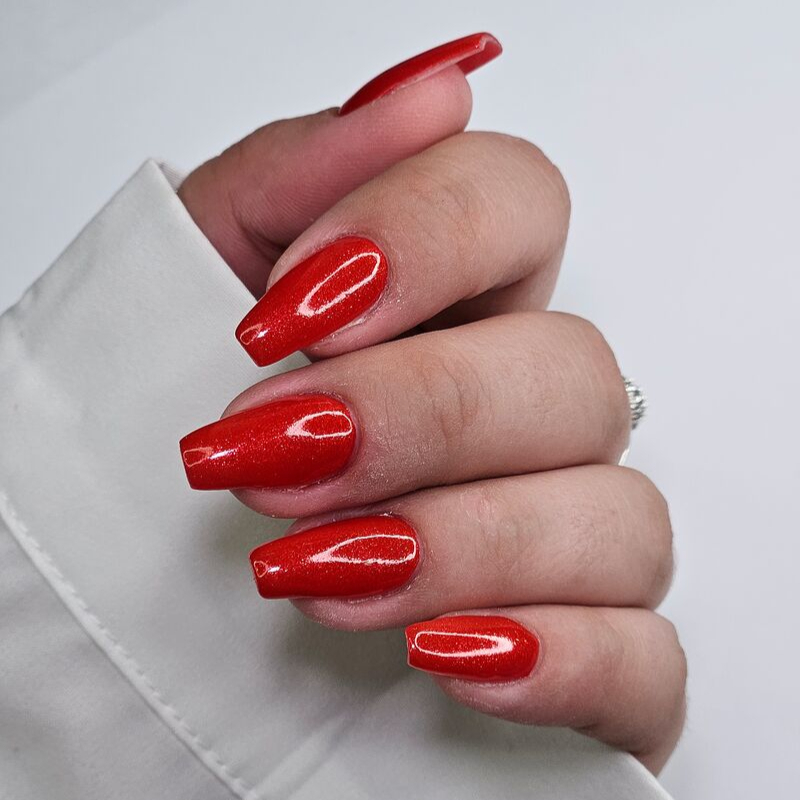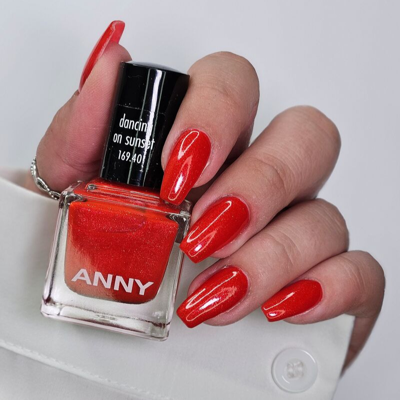 這款橘紅色帶有細緻微光,如同夏日傍晚的天際,溫柔而熱情。點綴的閃粉微光,可在擺動間打造出跳動的色澤彷彿將夕陽留在指尖。