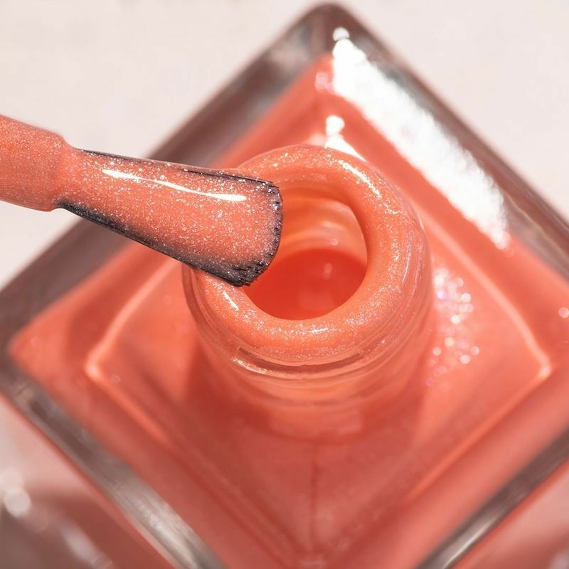 以暖亮的橙色作為底色,點綴上少量金色細粉,展現濃濃的活力,指彩怎麼能不引人關注呢