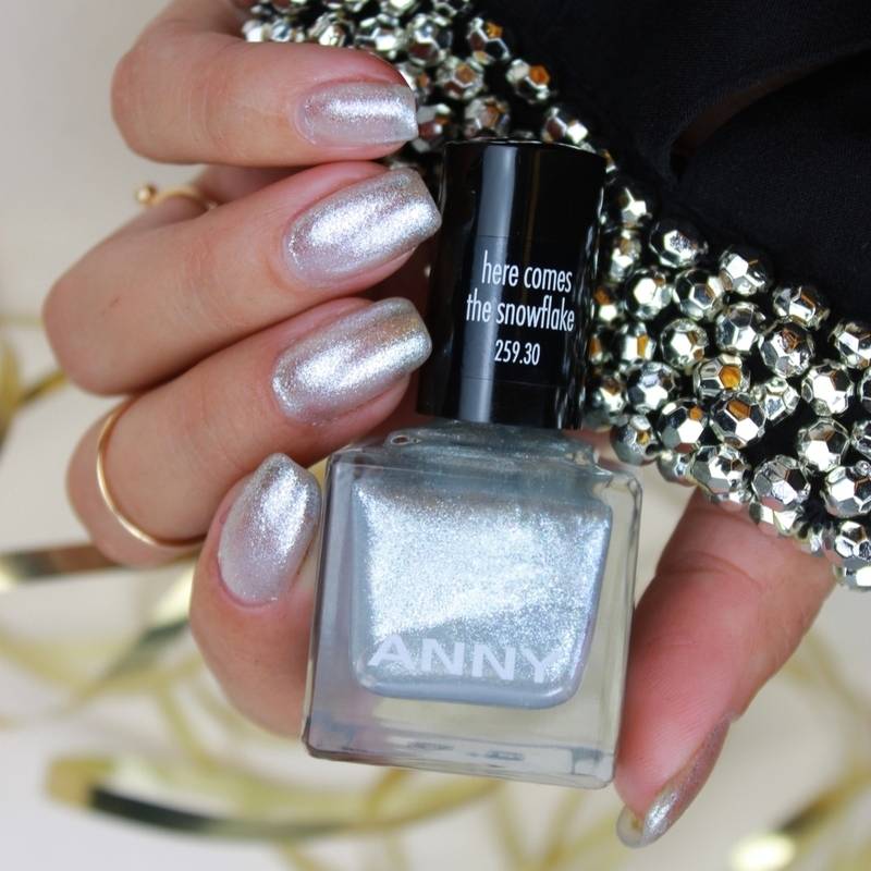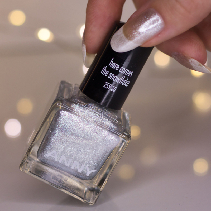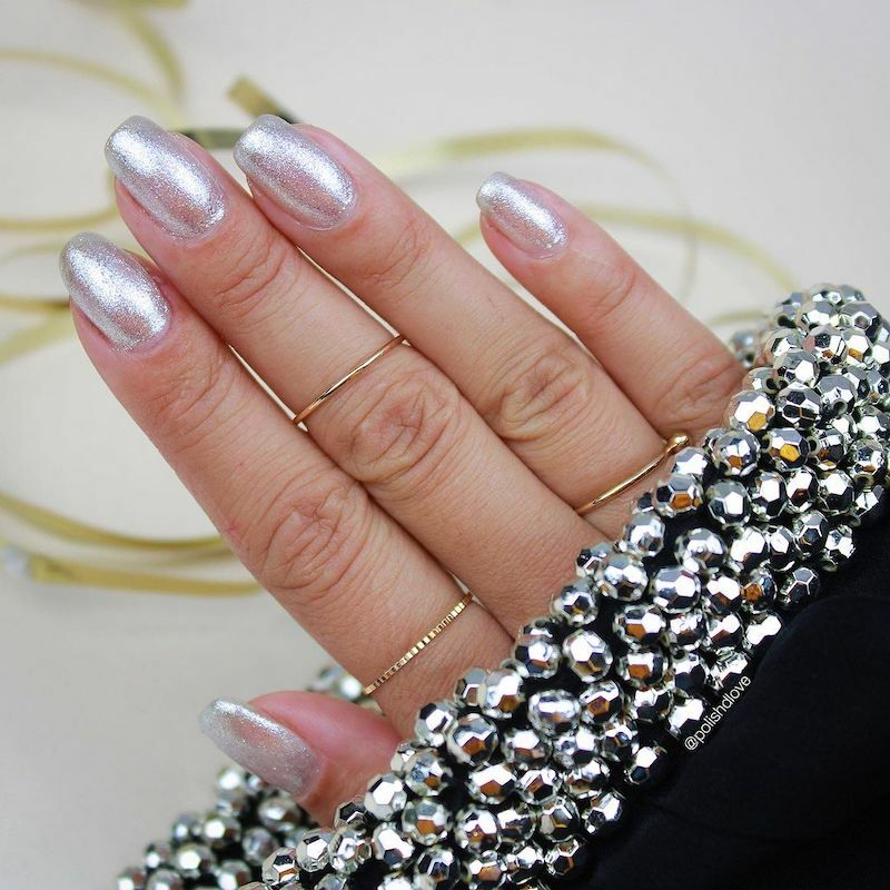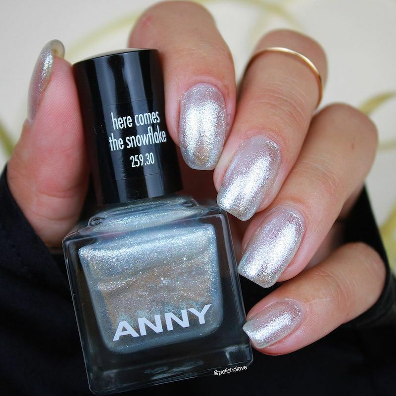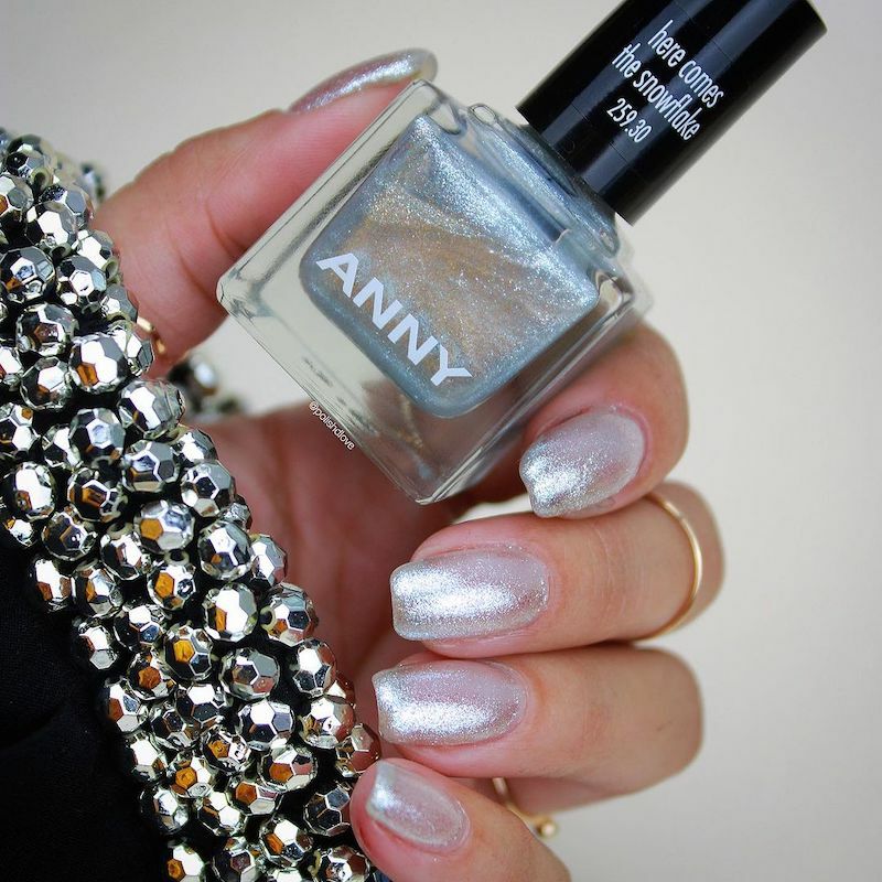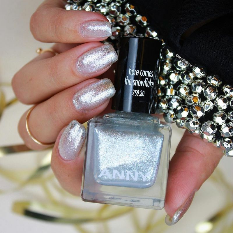 低調卻質感非凡的雪花色,單擦一層是晶釉透銀色,擦兩層則是閃爍的雪花銀白,指尖白皙乾淨。