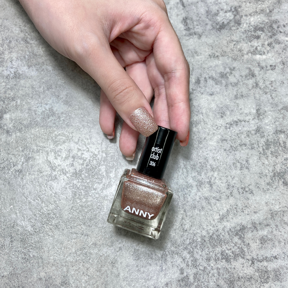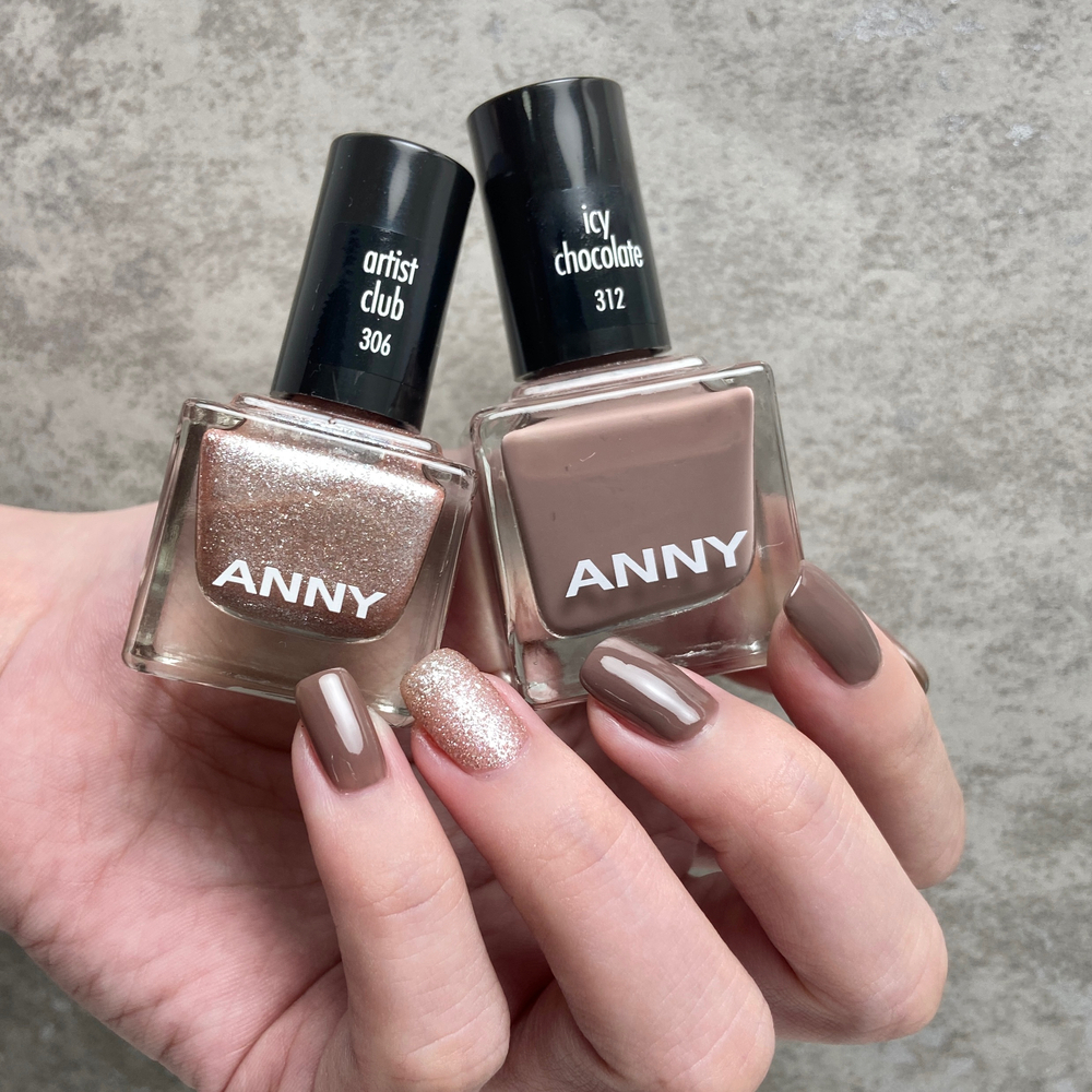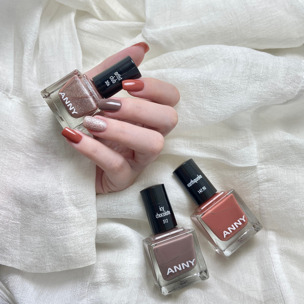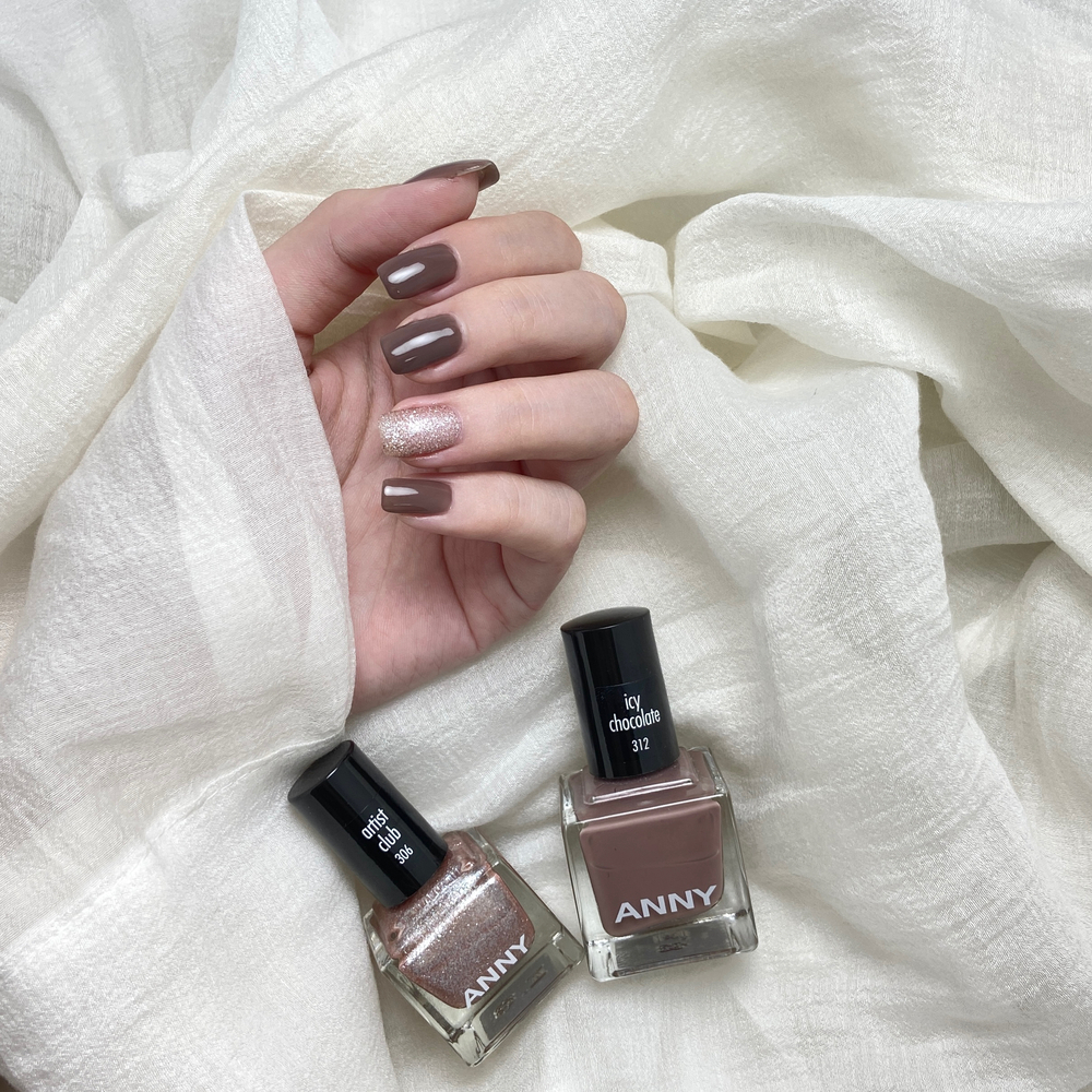 輕盈的摩卡棕銀色,在裸透褐色的基底中,加入銀白色及棕玫瑰色的細箔片,十指全擦自帶低調奢華的氣勢,也非常推薦單擦1-2指作為點綴色!