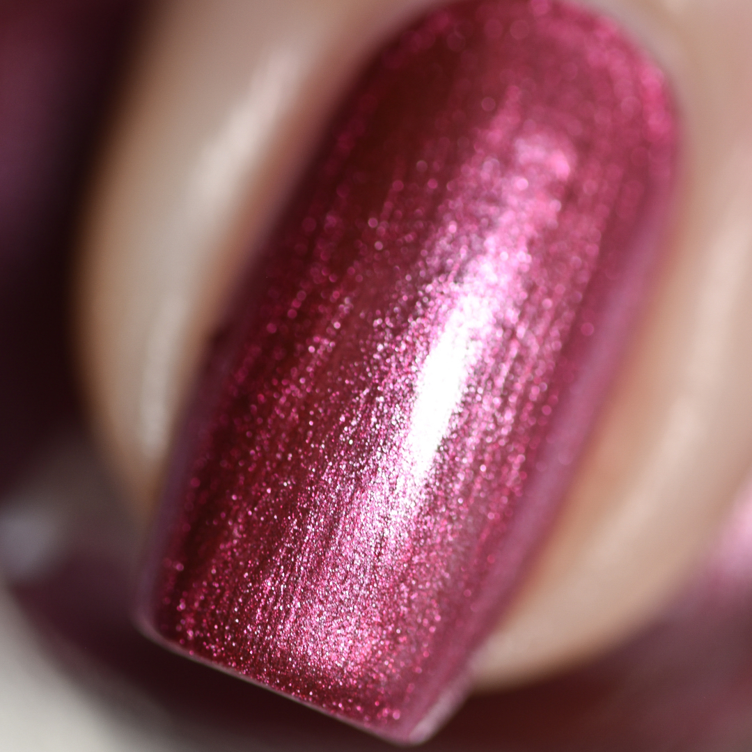 金屬桃紅色指甲油,帶有霓虹粉紫光,光澤鮮明奪目,充滿未來感。獨特的色彩在燈光下閃爍出十足的歐美風,無論是白天還是夜晚,都能讓您的指尖成為吸睛亮點,增添大膽自信的潮流魅力。