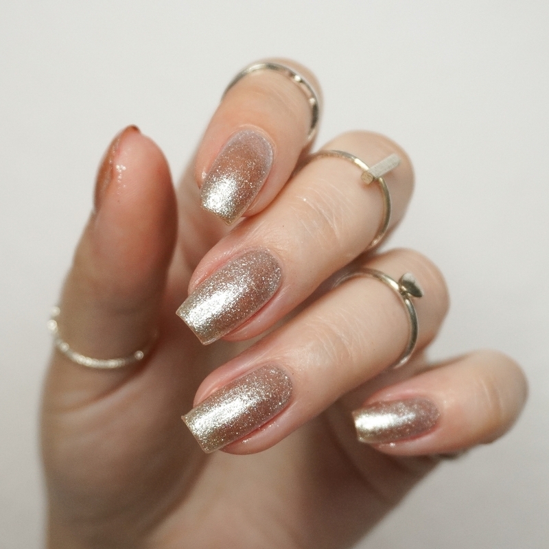 指尖纖長香檳原色!流沙淡棕金色,融合銅金色、銀白色低調微光,打造乾淨白皙的視覺效果,一層擦氣色,兩層擦氣勢!