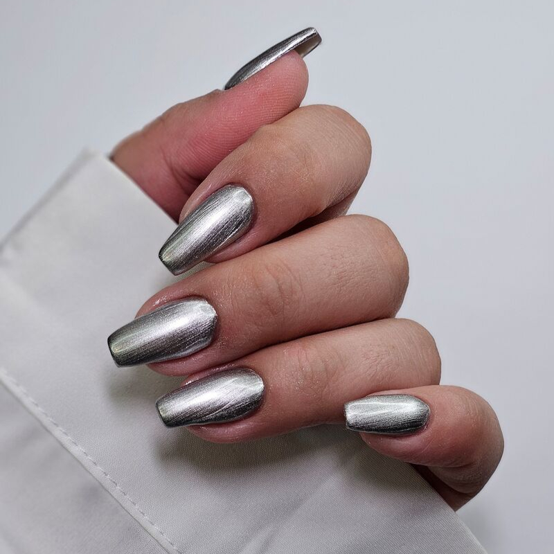 閃耀星河銀,前衛大膽卻不失優雅。單擦就已閃耀不已,疊擦兩層更能打造滿滿的金屬未來感,為你的派對造型增添超現實感的光芒性格。