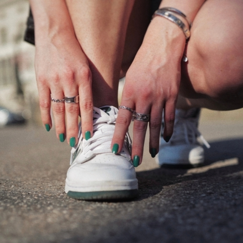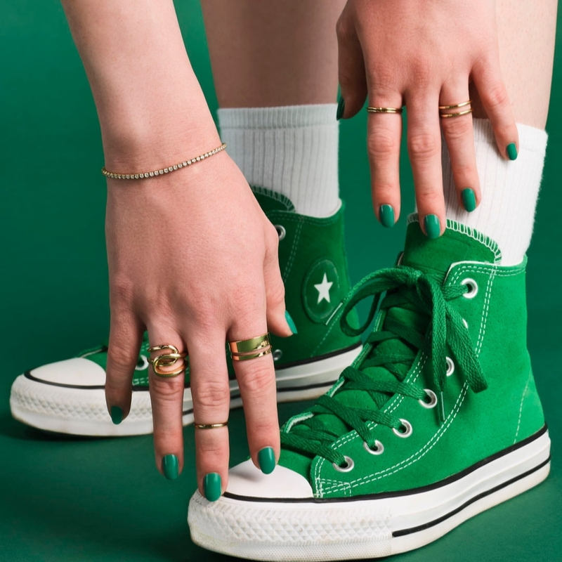 孔雀綠色調,如潮水般濃郁的復古風。高明度的色調富有迷人光澤,指尖滿溢的活力呼之欲出,有瞬間穿越異國風情的時尚魅力。