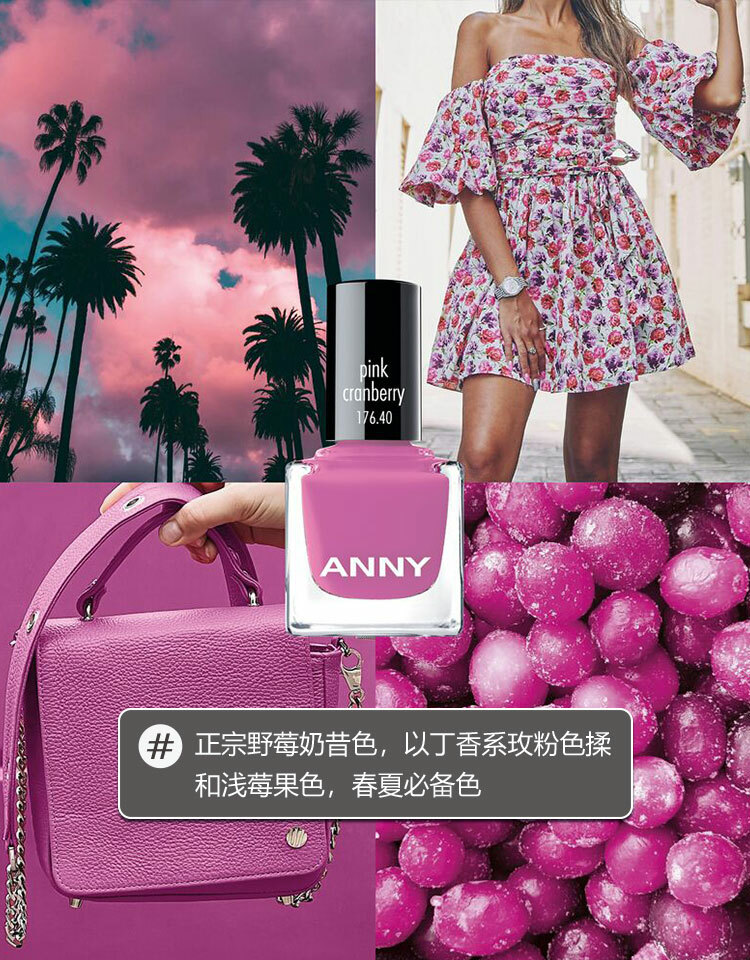 正宗野莓奶昔色,以丁香系玫粉色揉和淺莓果色,絕對是春夏必備色!