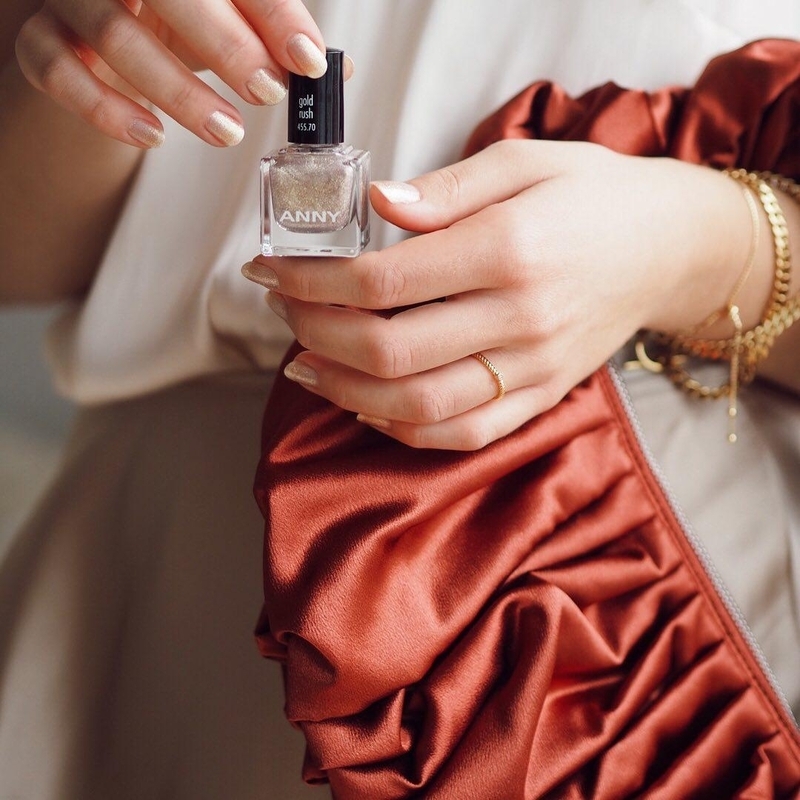 用珠光香檳色融合了熠熠的黃金系亮粉,提亮指尖膚色,讓指尖看起來元氣十足。