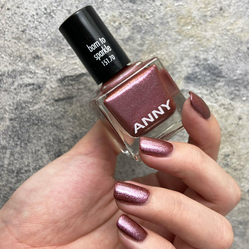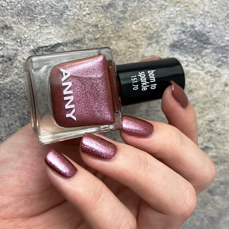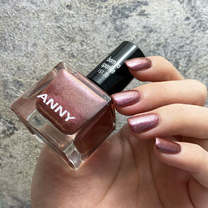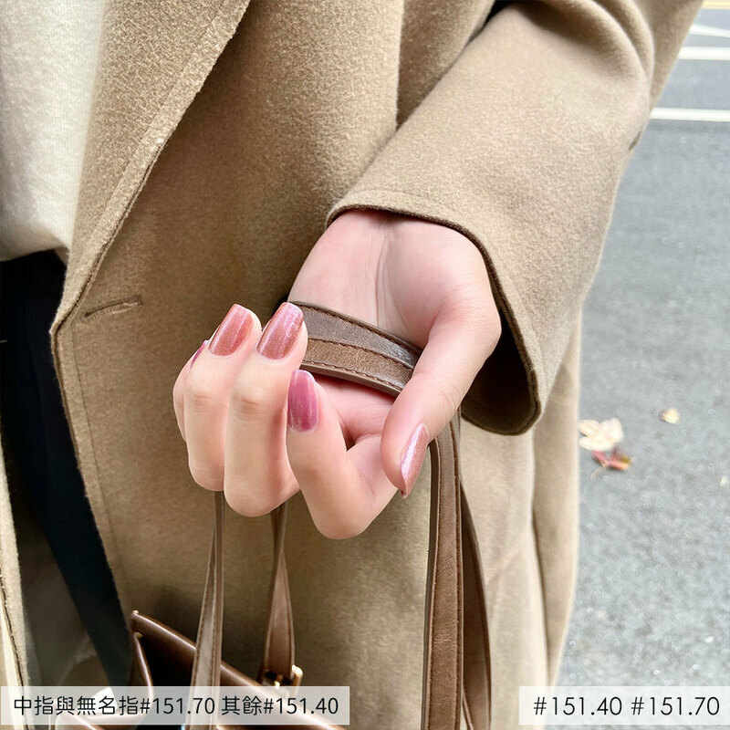古董深玫瑰銅色,加入細膩的銀粉、淡金色鑽光粒子,讓整體光澤感再提升一個層次,讓指甲呈現天生閃耀的明亮視覺感。