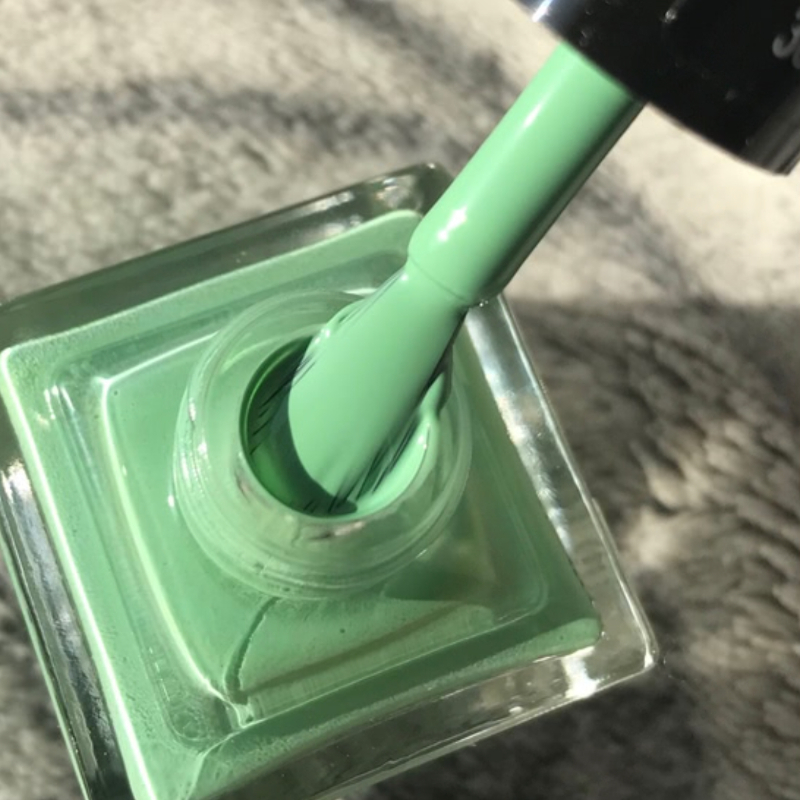 低彩度、高明度的淺綠色,並糅和一點點叛逆的灰感,夏日經典牛奶色彩!健康膚色的美人兒終於能擦上淘氣的綠色