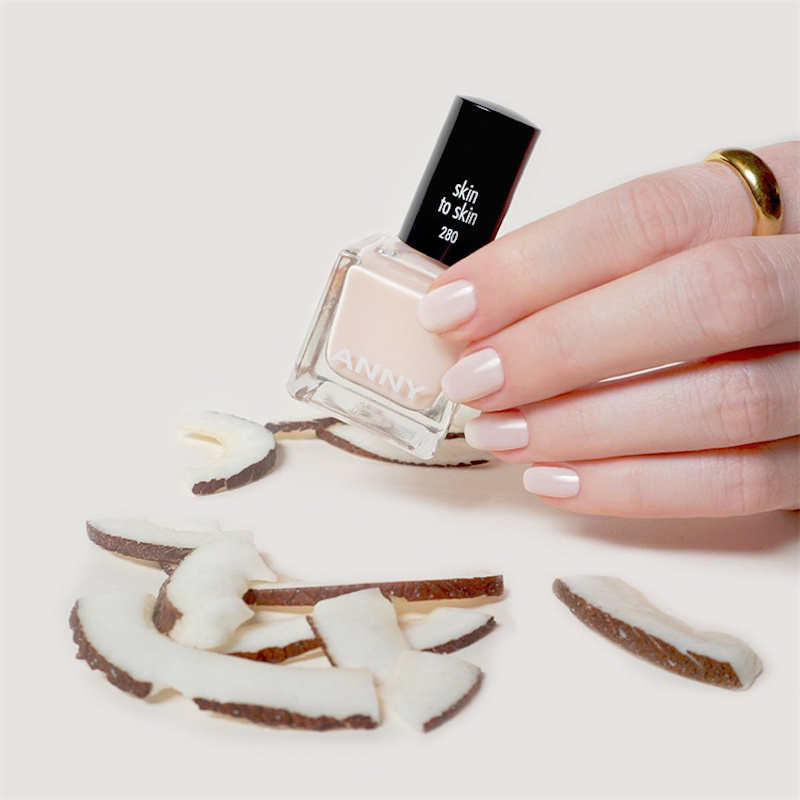 白皙感與透明感兼具的透粉膚色,打造完美的水晶甲面
